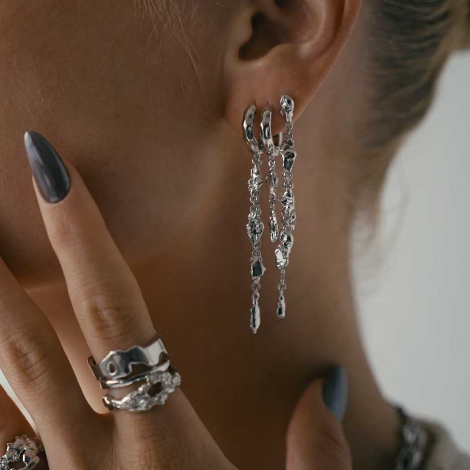 Hoops lokkar með óreglulegri áferð og 2x arkir hanga niður með keðju á milli.