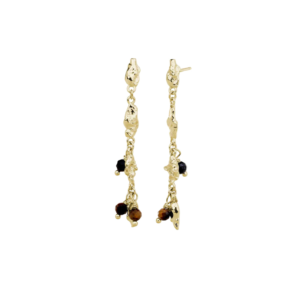 By L - ÖrkÖrk Lokkar Stud m. Tígrisauga & Keðju - Gylltir