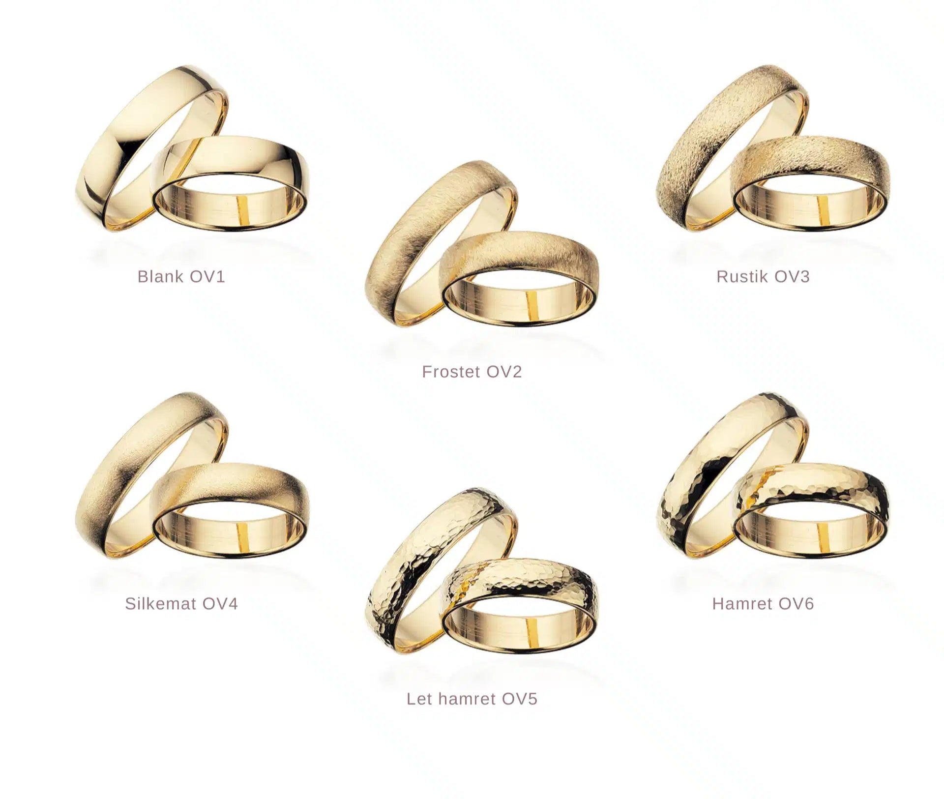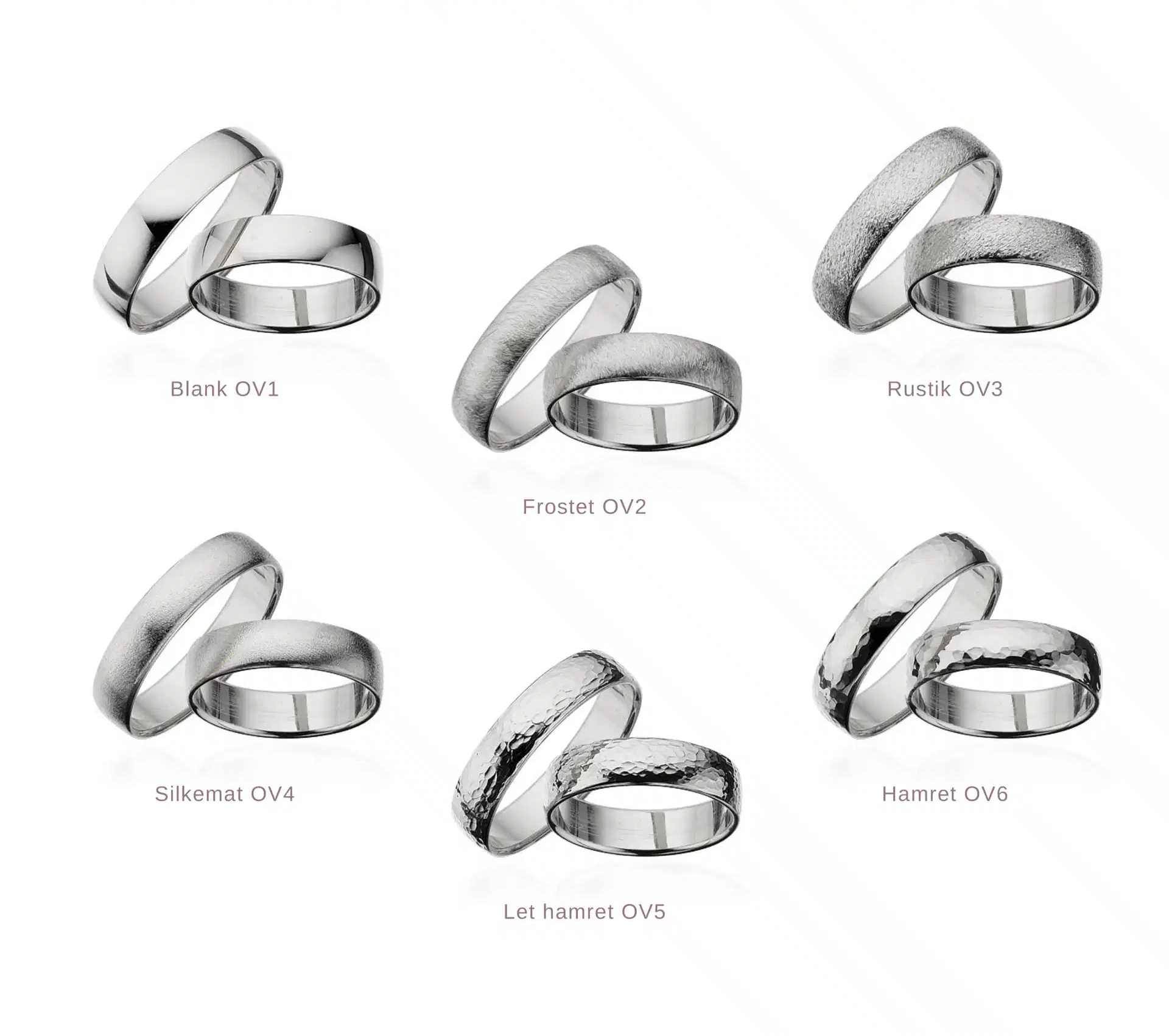 Þú getur einnig valið milli mismunandi áferðar á hringana (t.d. matta, hamraða o.fl.) – án aukakostnaðar.