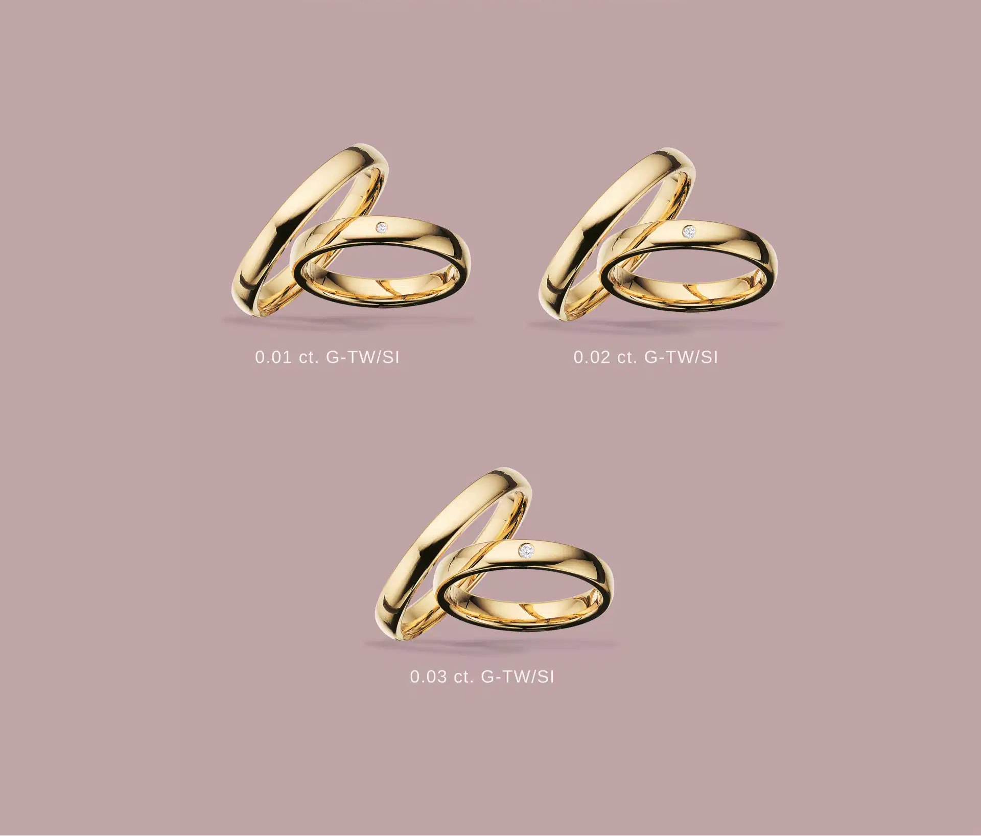Fallegir, klassískir giftingarhringar – 3,5 mm á breidd – fáanlegir í eftirfarandi málmum: