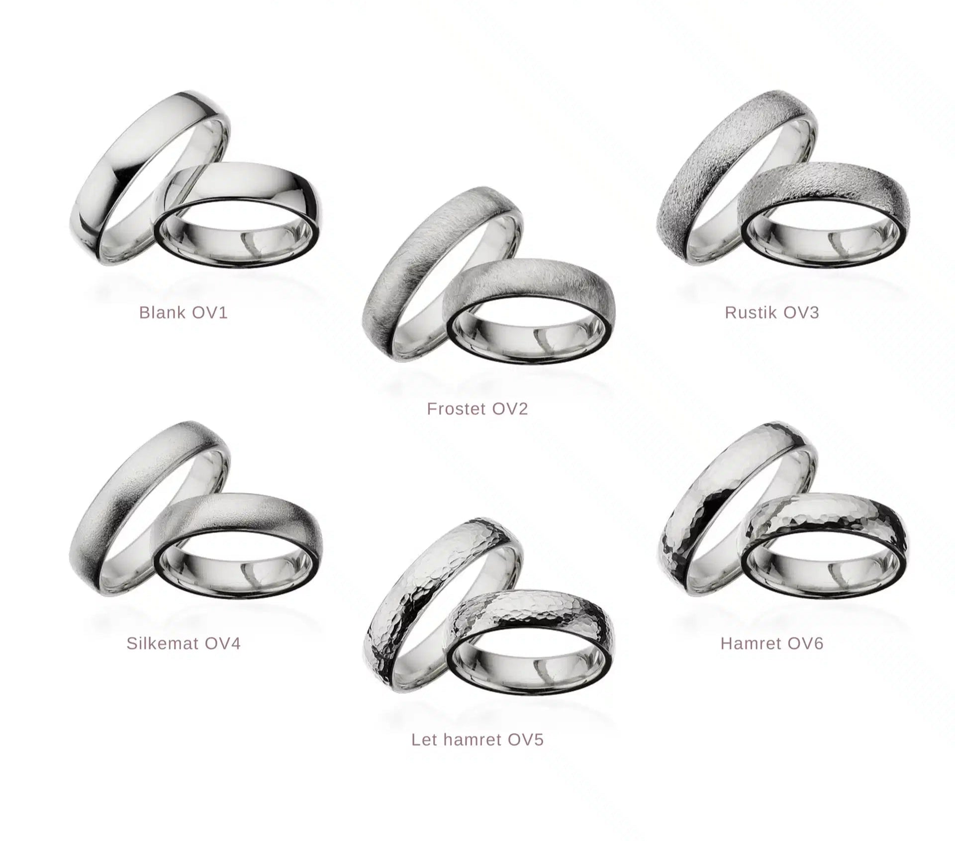 Þú getur einnig valið milli mismunandi áferðar á hringana (t.d. matta, hamraða o.fl.) – án aukakostnaðar.