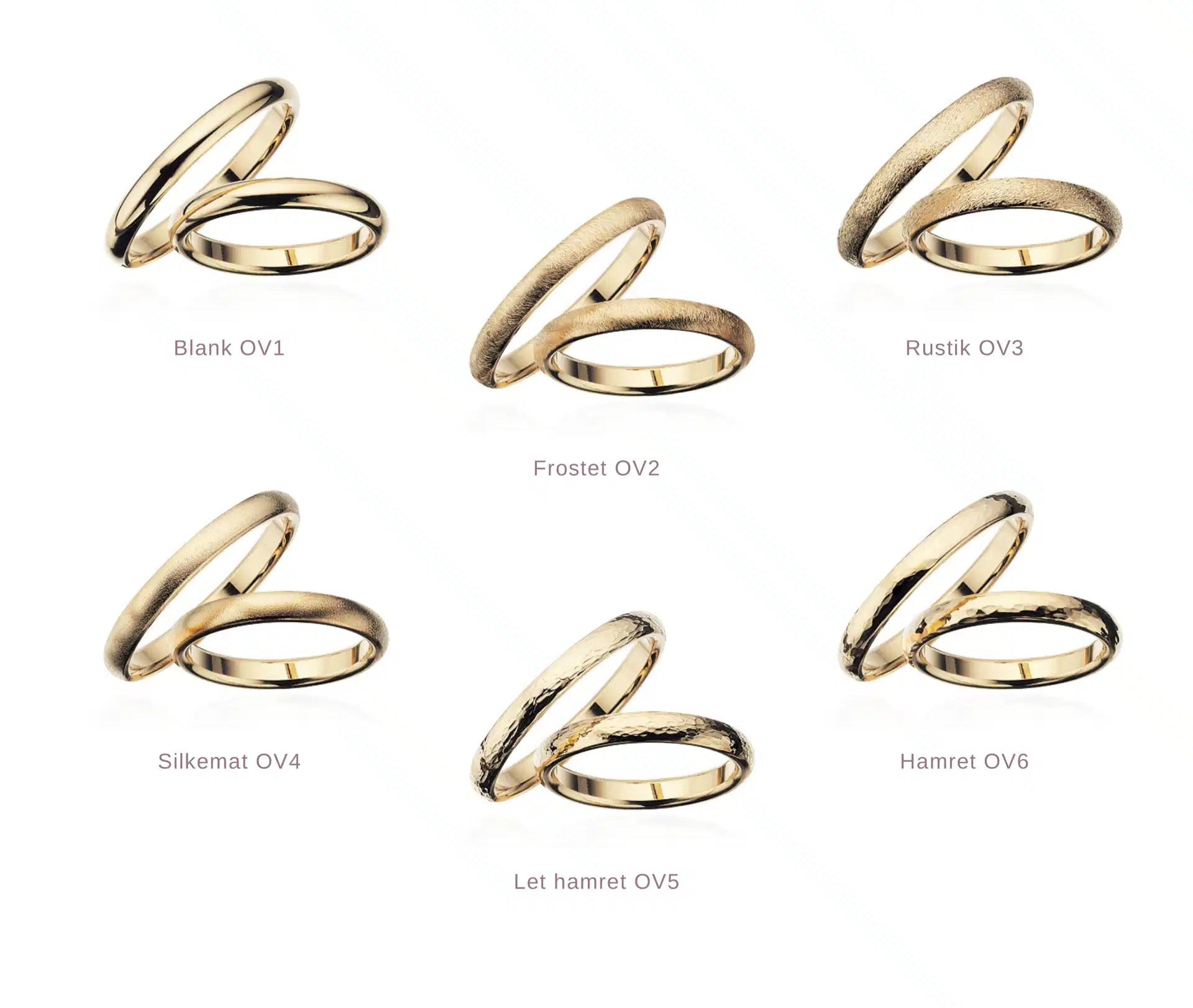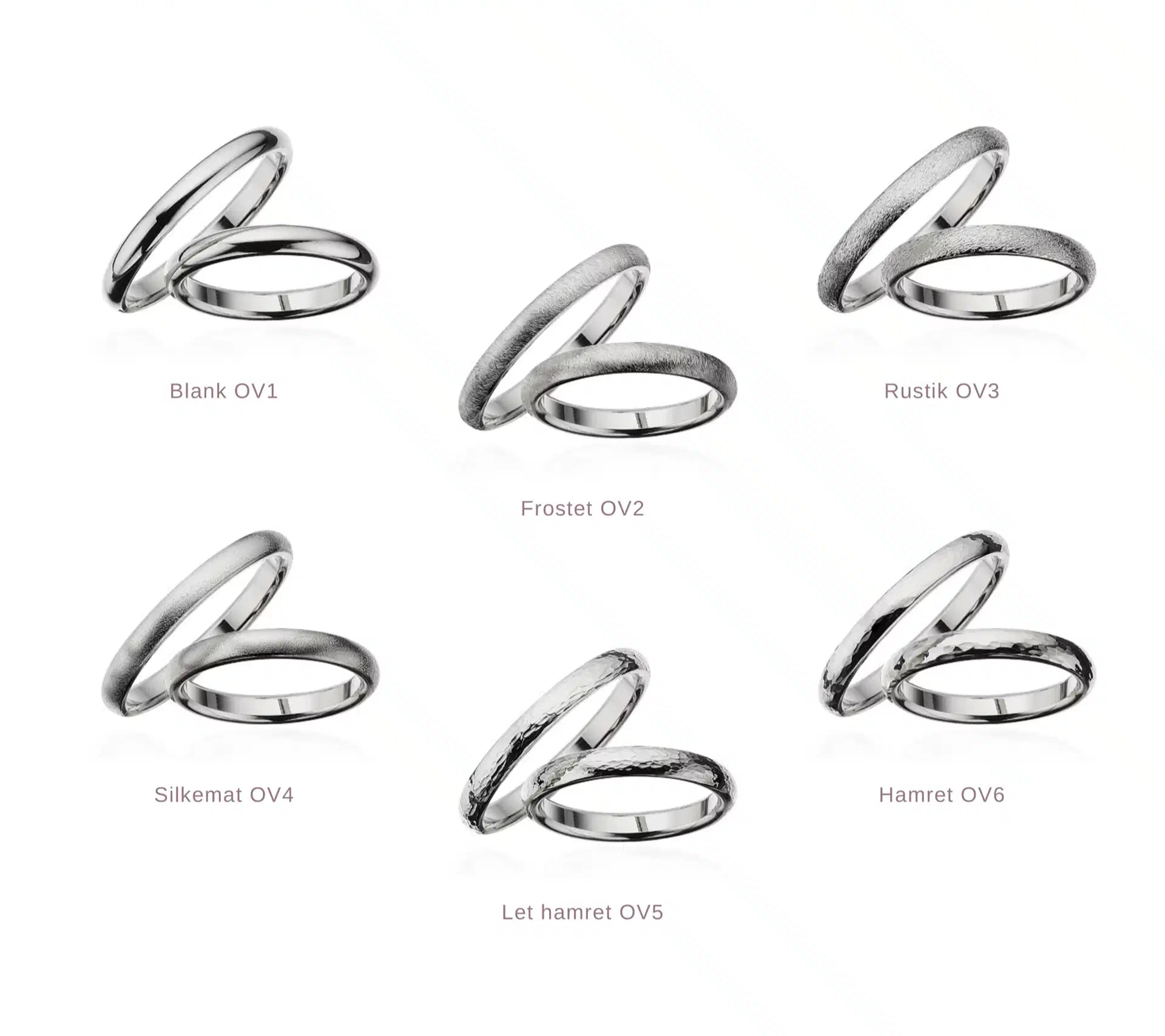 Þú getur einnig valið milli mismunandi áferðar á hringana (t.d. matta, hamraða o.fl.) – án aukakostnaðar.