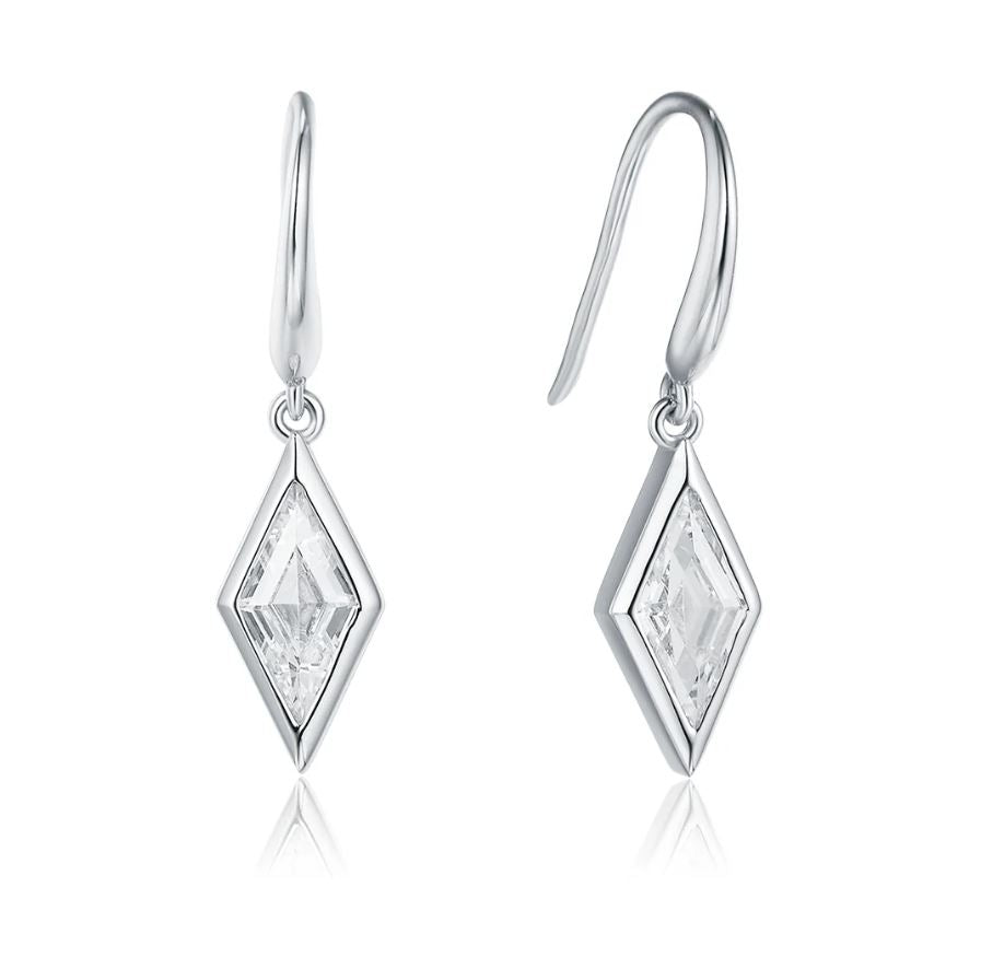 - Silfurlokkar með tígullaga glærum zirkonsteini.