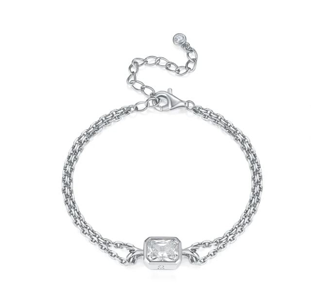 Armbandið er með tvöfaldri silfurkeðju sem er 17cm að lengd og með 5,5cm framlengingu. Steinninn er 10x8mm.