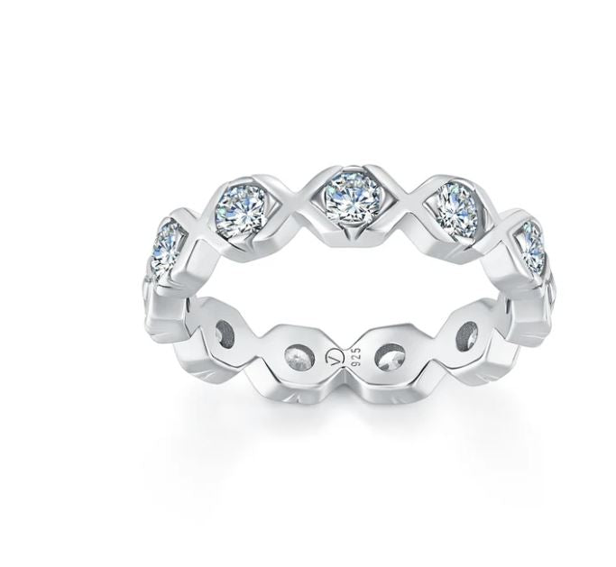 Glæsilegur hringur úr silfri með demantskornum sirkon steinum sem mynda XOXO. Fallegur hringur einn og sér, og tilvalin til að raða saman með fleiri XO hringjum, Tennis hringjum eða Baguette hringjunum.