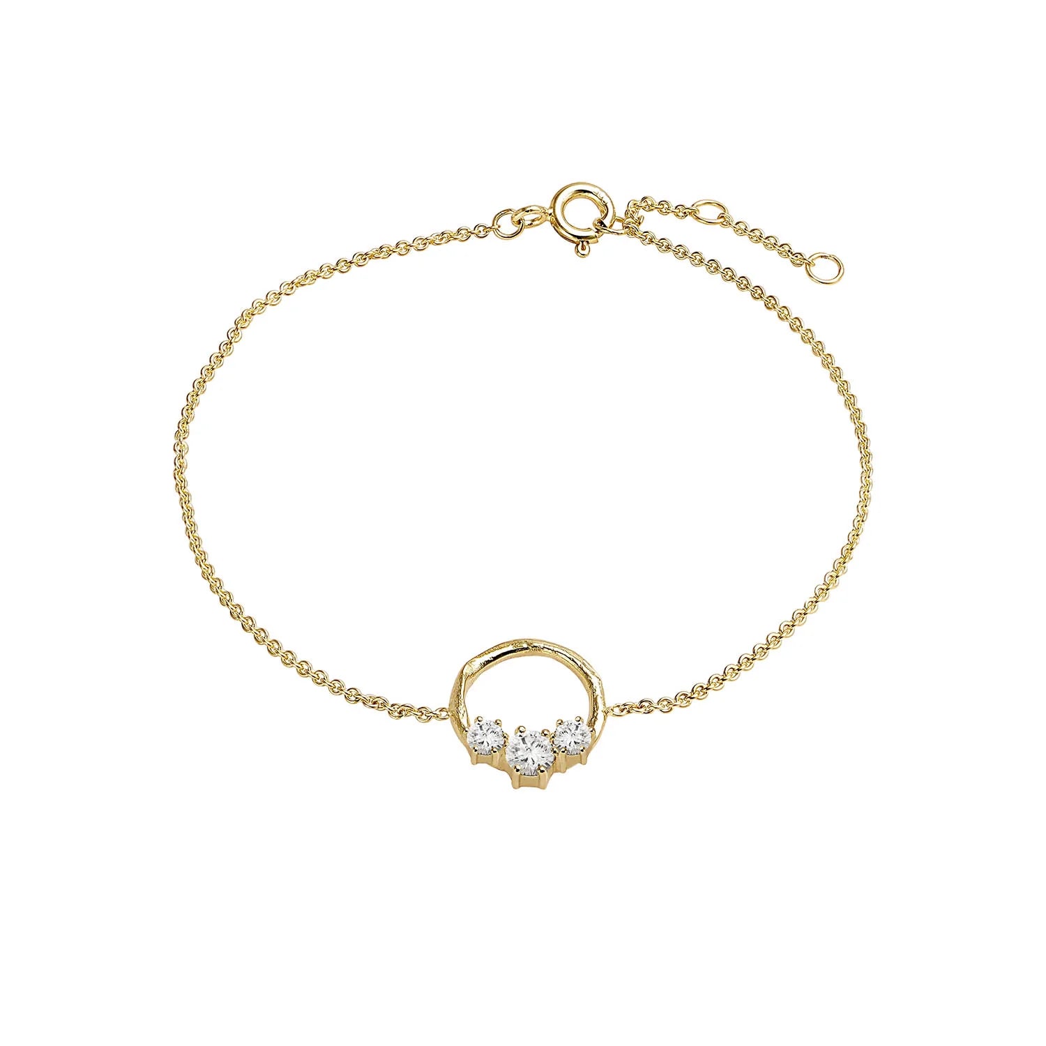 Armbandið er í Gárulínu jens. Armbandið er handsmíðuð úr 14 karata gulli með zirconia steinum.