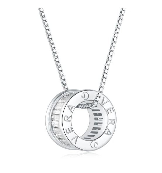 Tunnel Midi hálsmen með glærum baguette-skornum sirkon steinum allan hringinn. Á báðum hliðunum er grafið VERA og VD lógó.