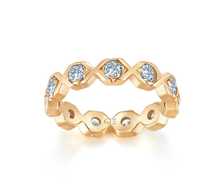 Glæsilegur hringur úr silfri með demantskornum sirkon steinum sem mynda XOXO. Fallegur hringur einn og sér, og tilvalin til að raða saman með fleiri XO hringjum, Tennis hringjum eða Baguette hringjunum.